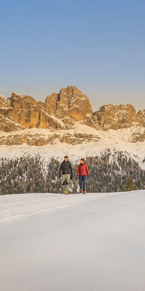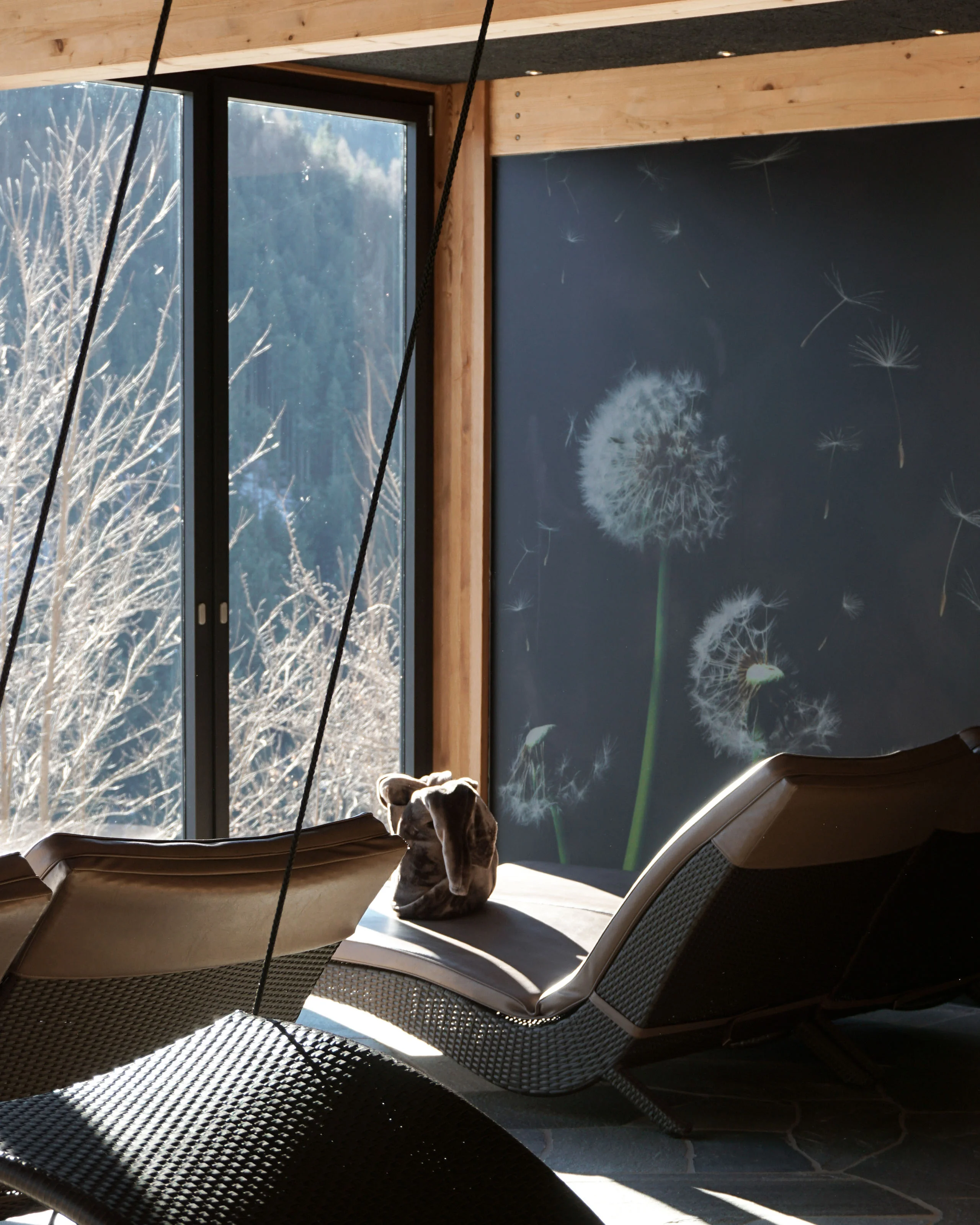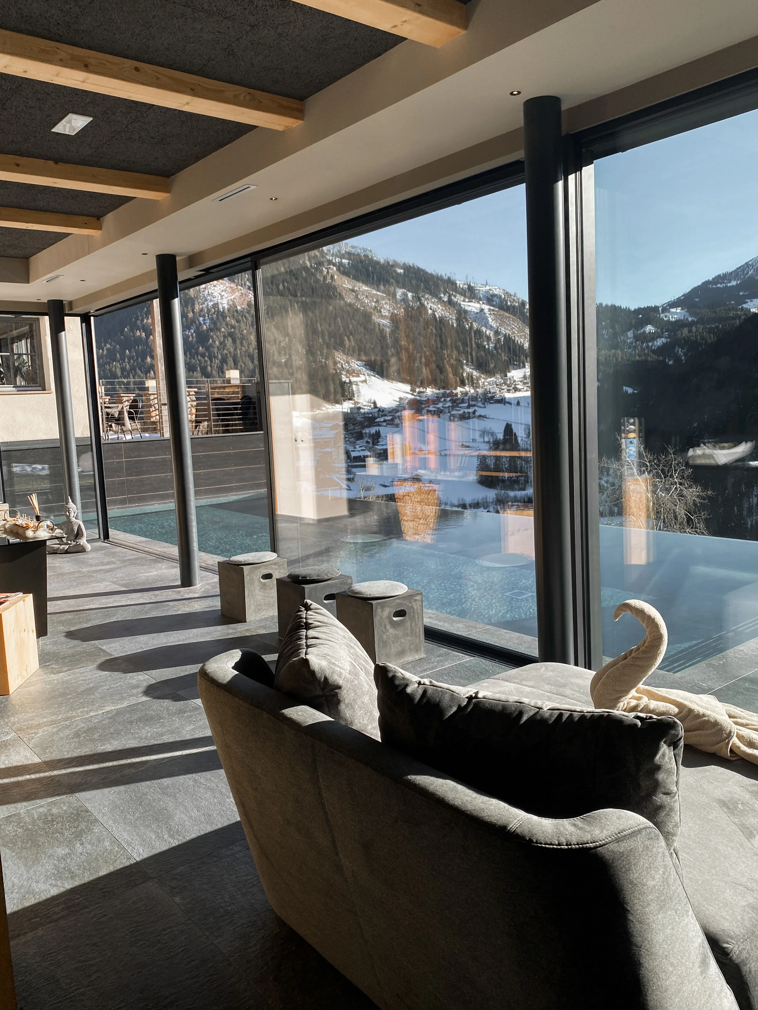 Morgens den Schnee auf den Lärchen, abends rosa Dolomitengipfel vom Pool aus bewundern – dazwischen nur ihr.